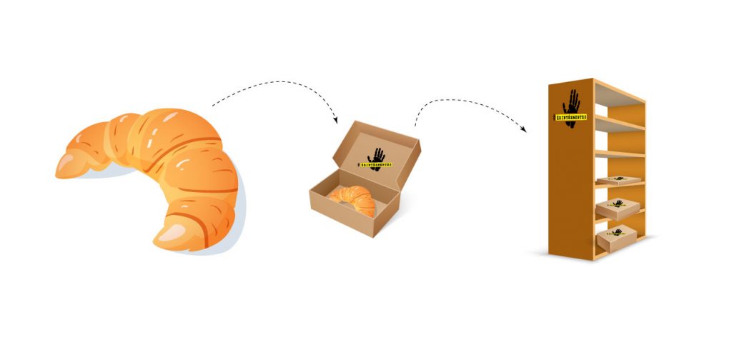 - A vásárló otthonában kiválasztja a kívánt kenyereket, süteményeket az Ön oldalán.